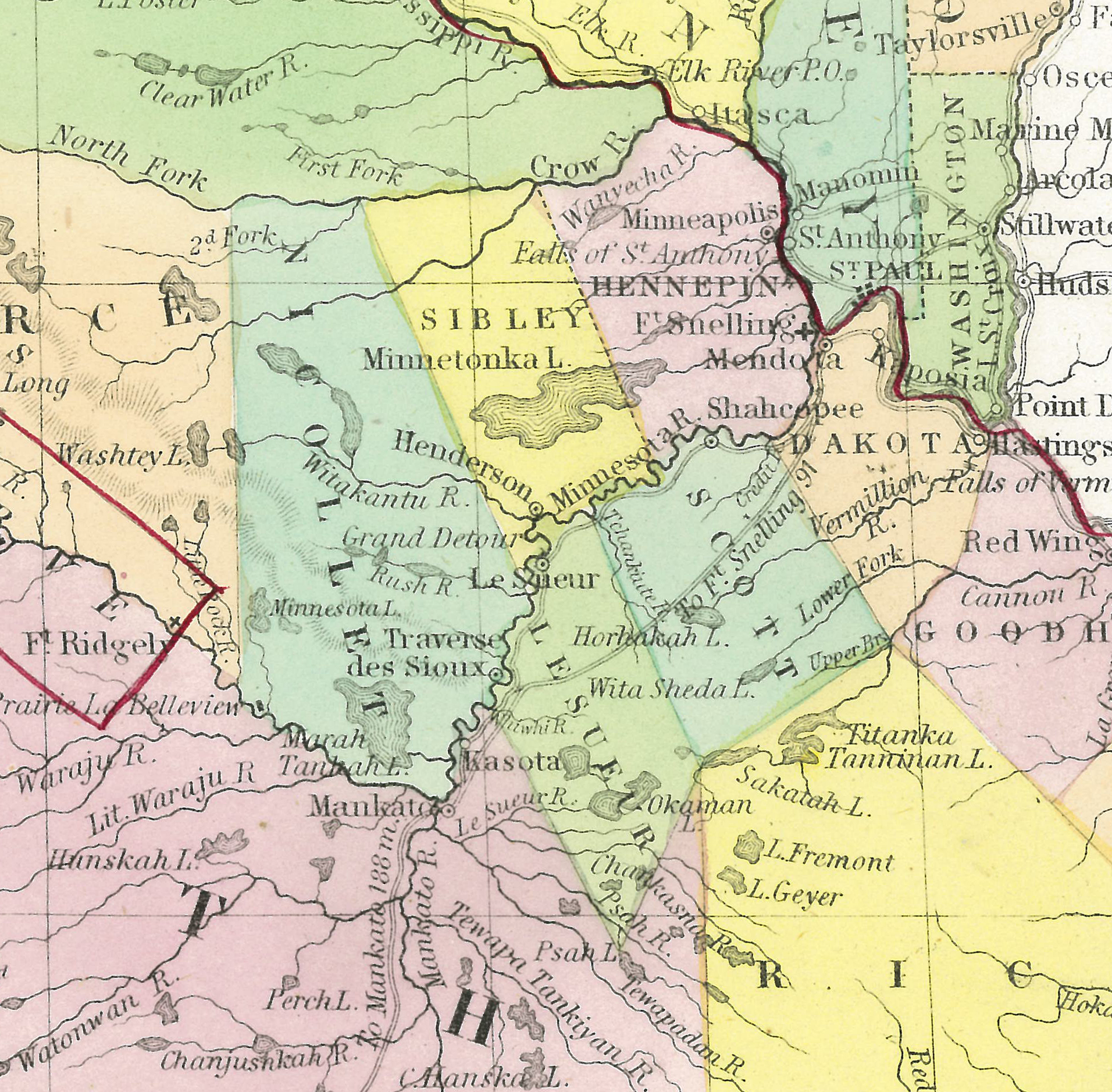 At the time, both Nicollet and Sibley counties extended all the way to the Crow River. It wasn’t until February 20, 1855, that new legislation established the county lines we recognize today.